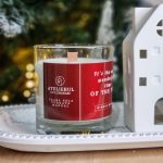 Lumanare parfumata, turnata manual, din ceara non – toxica de soia. Fitil din lemn. Ardere lenta si uniforma. Greutate neta – 300g