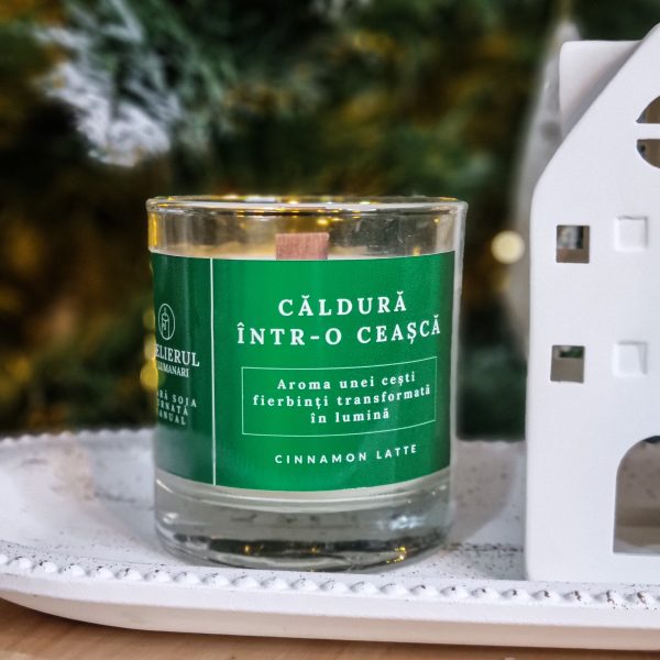 Lumânarea parfumată cu aromă de Cinnamon Latte îți aduce parfumul cald și reconfortant al cafelei cu scorțișoară, ideal pentru a transforma orice spațiu într-un loc primitor. Cu note condimentate de scorțișoară îmbinate cu accente dulci de cafea cremoasă, această lumânare creează o atmosferă cozy, perfectă pentru serile răcoroase sau momentele de relaxare. Realizată din ceară de soia naturală, arde uniform și fără toxine, oferind un timp de ardere îndelungat. Este alegerea perfectă pentru iubitorii de arome calde și condimentate, adăugând un strop de confort și rafinament în decorul casei.