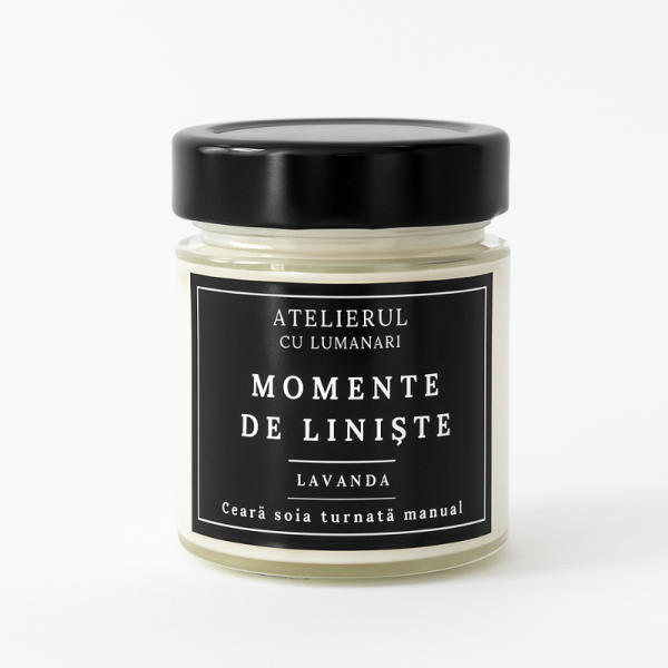 Lumânarea din ceară de soia cu aromă de lavandă este alegerea perfectă pentru momentele de relaxare și liniște.